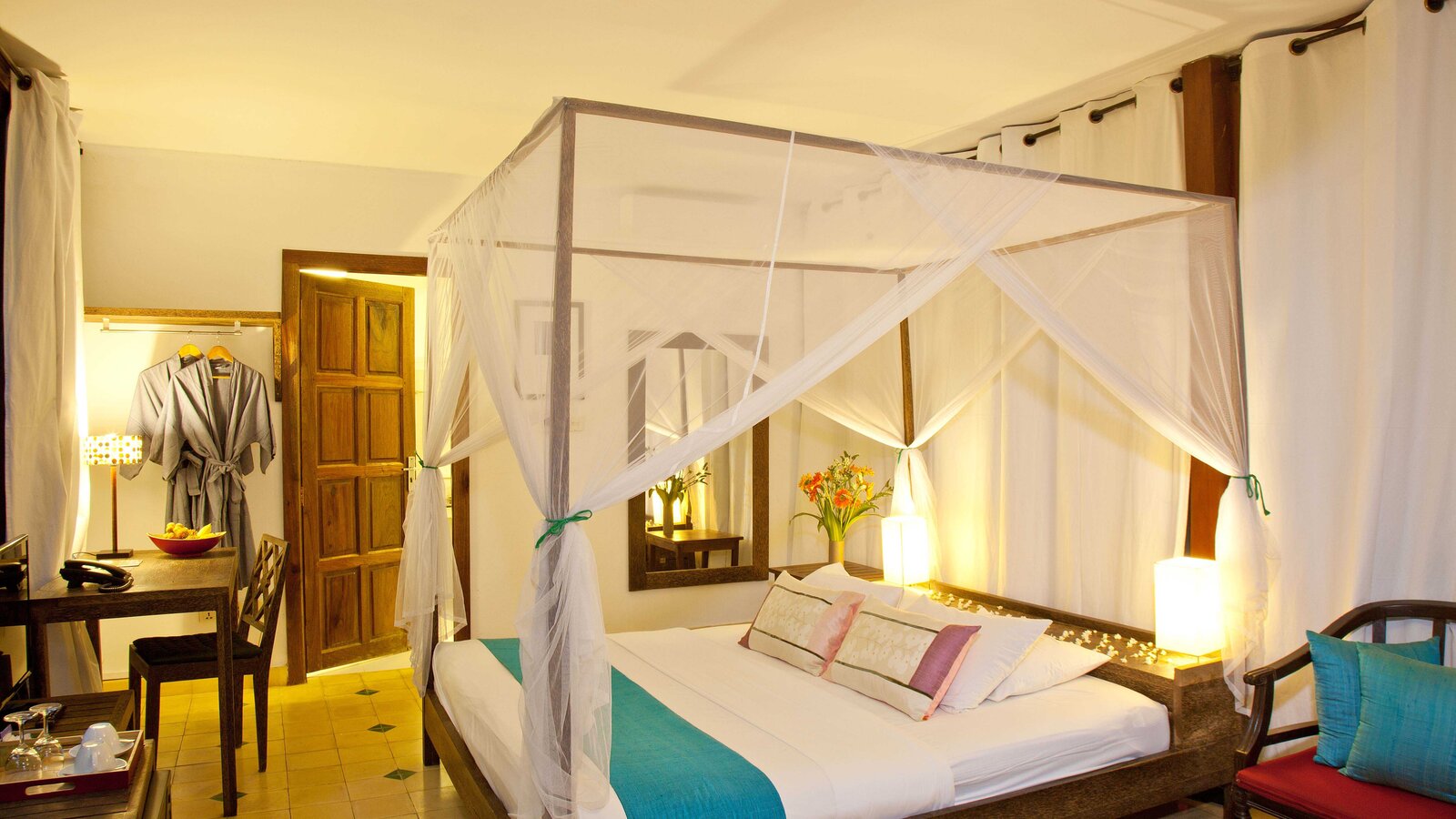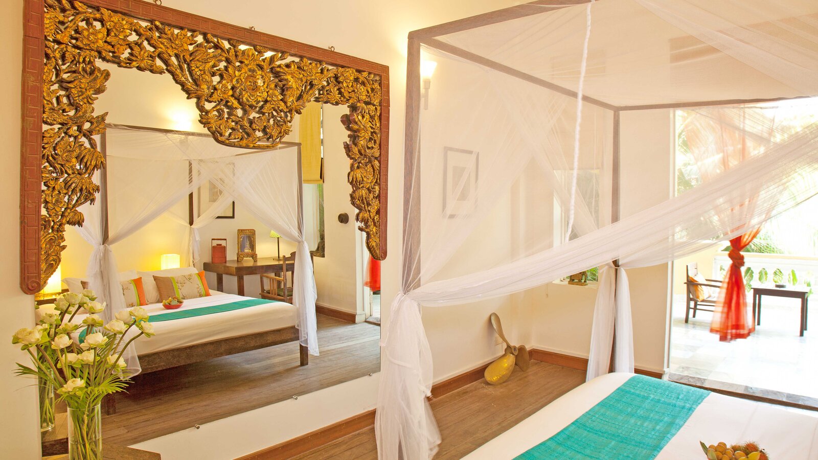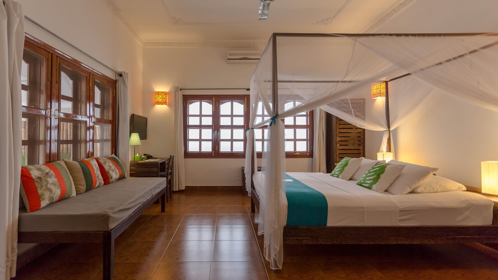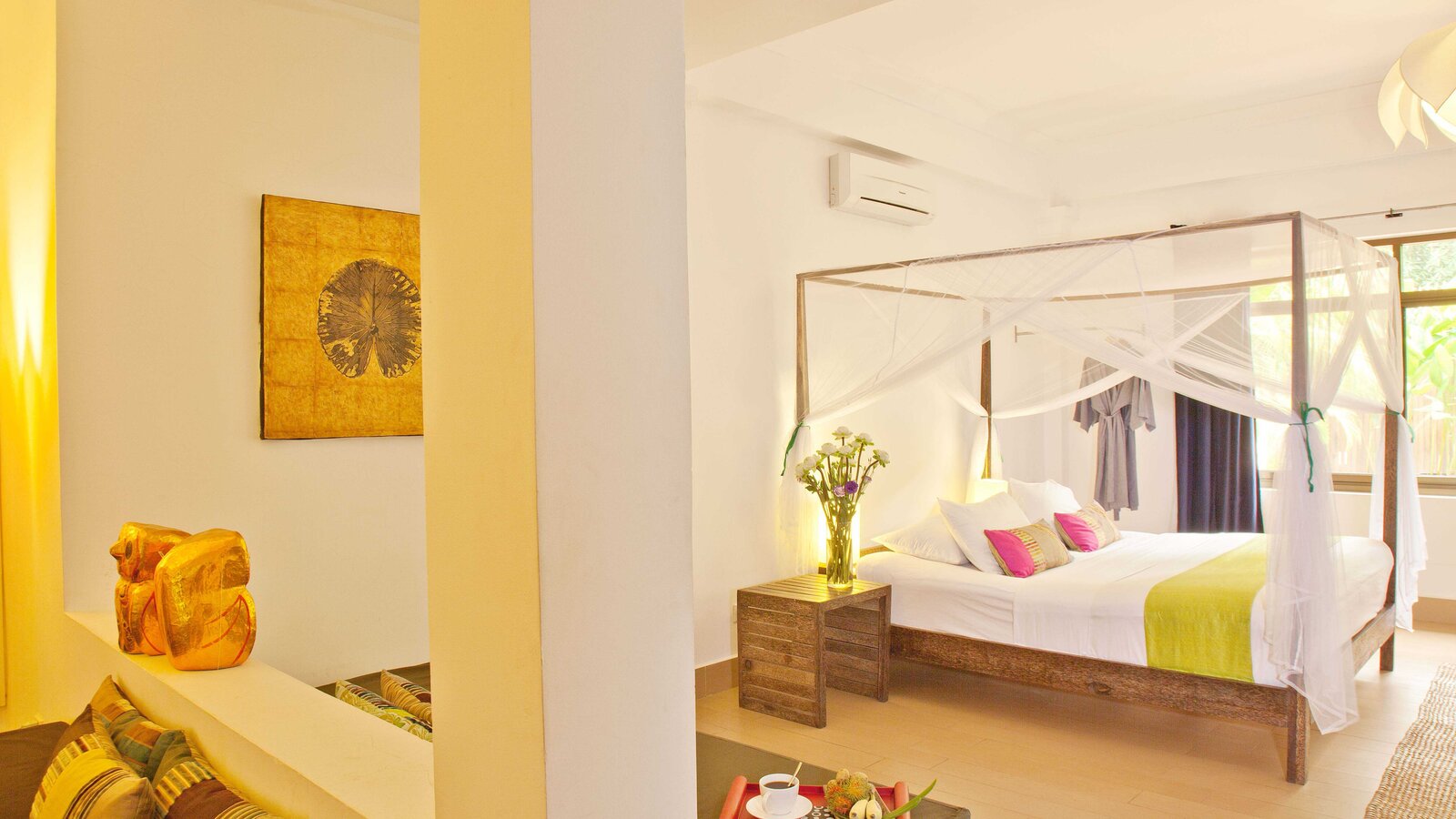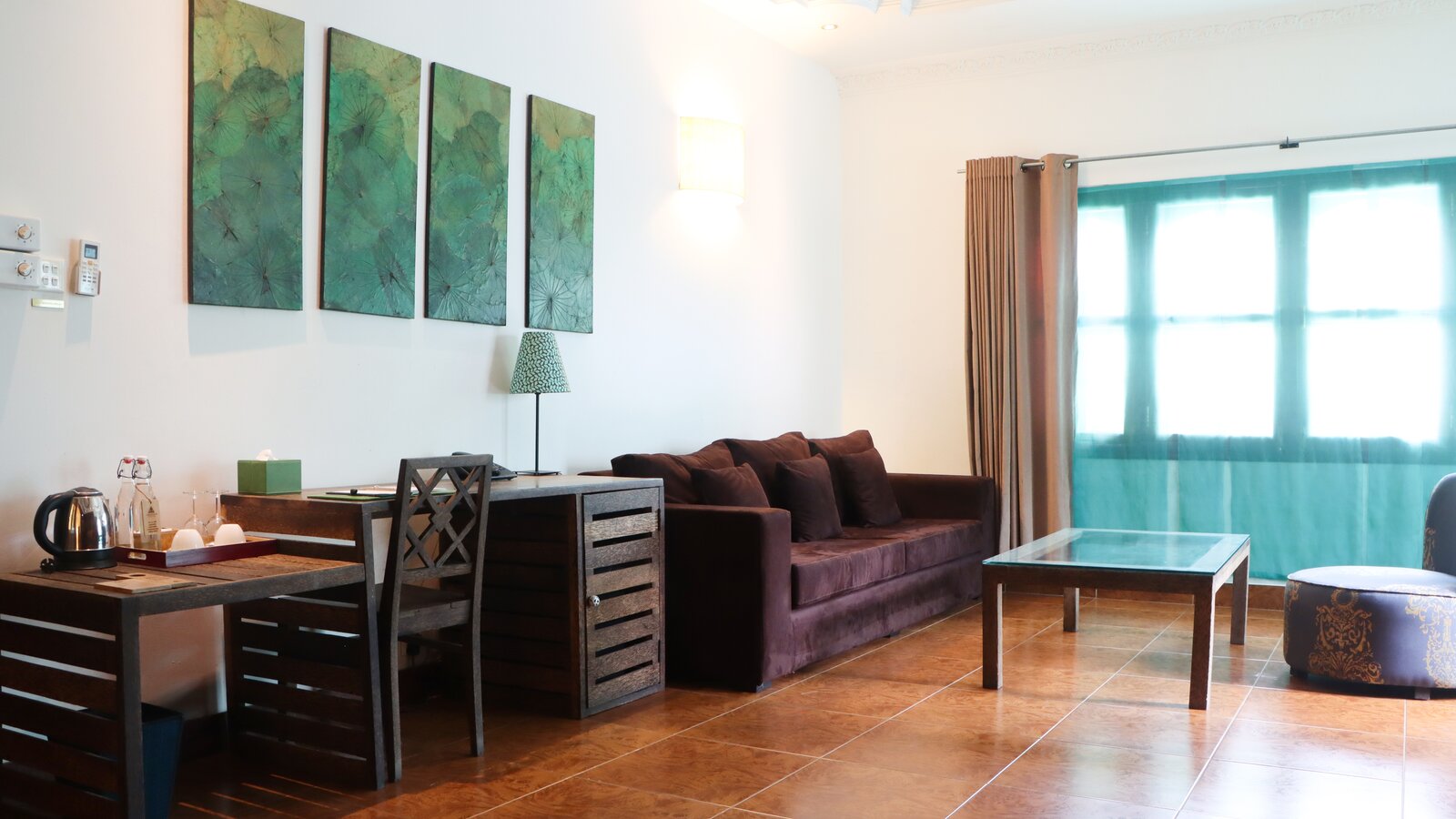 The ideal hideaway for a romantic stay in Phnom Penh, with the bedroom and separate bathroom opening to a private patio and its 6 x 3 m plunge pool (not heated). (Note: sink does not run hot water).